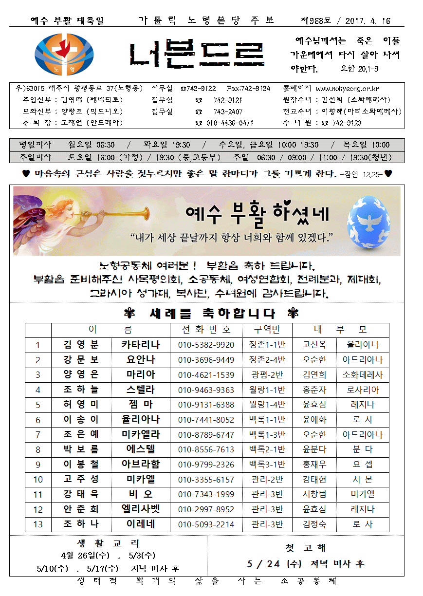 너븐드르 제 968호 2017.4.16 예수부활대축일