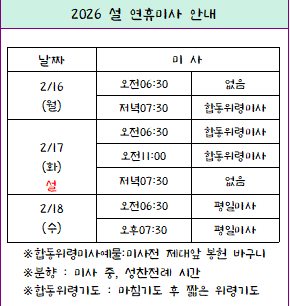 2026년 설연휴 미사 안내